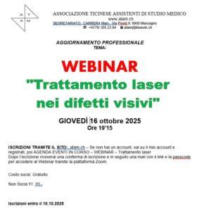 Webinar: “Trattamento laser nei difetti visivi” La vendita è finita